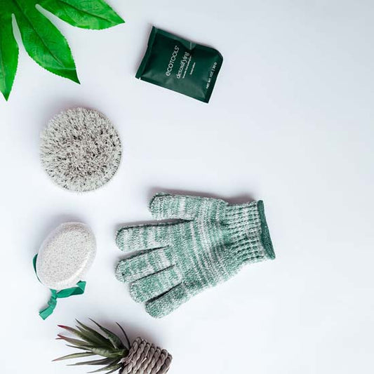 EcoTools #0086 Limited Edition Snowy Glow Kit, Shower Gloves, Dry Body Brush, Foot Pumice Stone & Foot Soak, 4 Piece Gift Set