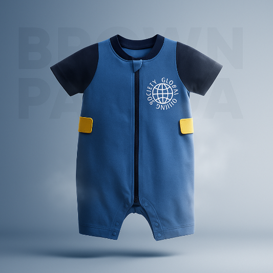 Blue Half-Sleeve Zipper Romper Organic Cotton Art Number CM0025