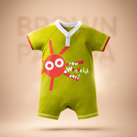 Green Baby Romper Half Sleeves Organic Cotton Art Number CM0036