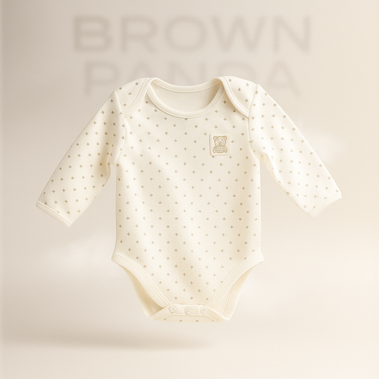 Adorable Full-Sleeve Half bottom Baby Boy Romper pet paw dots 0004 (Brown Panda) Original Art number CM0004