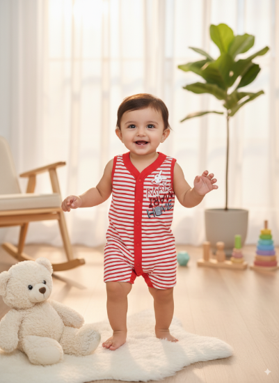 Red Striped Sleeveless Baby Romper Organic Cotton Art Number CM0034