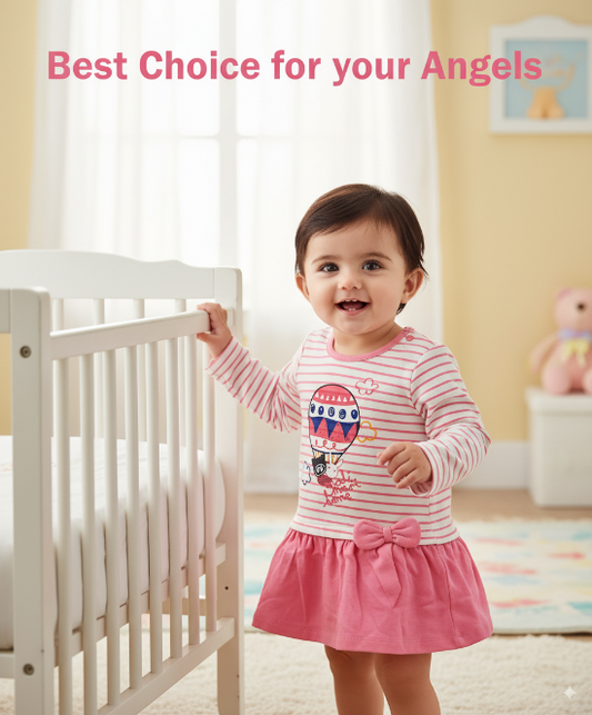 Pink Striped Baby Shirt – Full Frock Style Organic Cotton Art No. CM0041