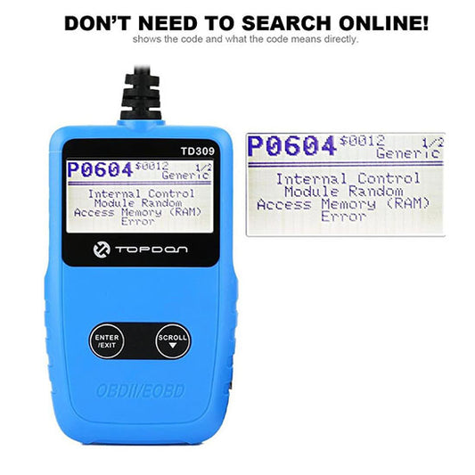 OBD2 Scanner,TOPDON EOBD2 Scan Tool TD309 Automotive Trouble Code Read and Clear, Retrieving I/M readiness, View VIN and Freeze Frame Data (Packed)