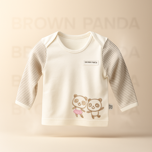 White Baby Shirt with Skin Brown Striped Sleeves – Organic Cotton Art number CM0019