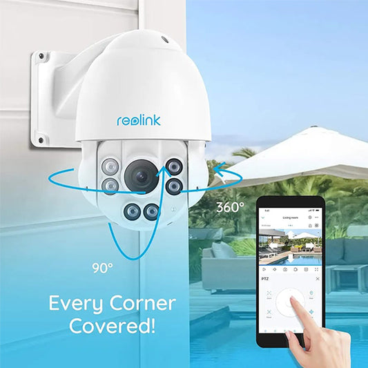 Reolink rlc 523wa 5mp 360° ptz wired and wifi camera With 5× optial zoom coulor night vision auto tracking (without box)complete accessories