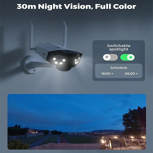 Reolink duo 4mp rechargeable wifi dual lens camera 180° wide angle with colour night vision without box scratches on body local stand and antenna Chinese language (colour fade)
