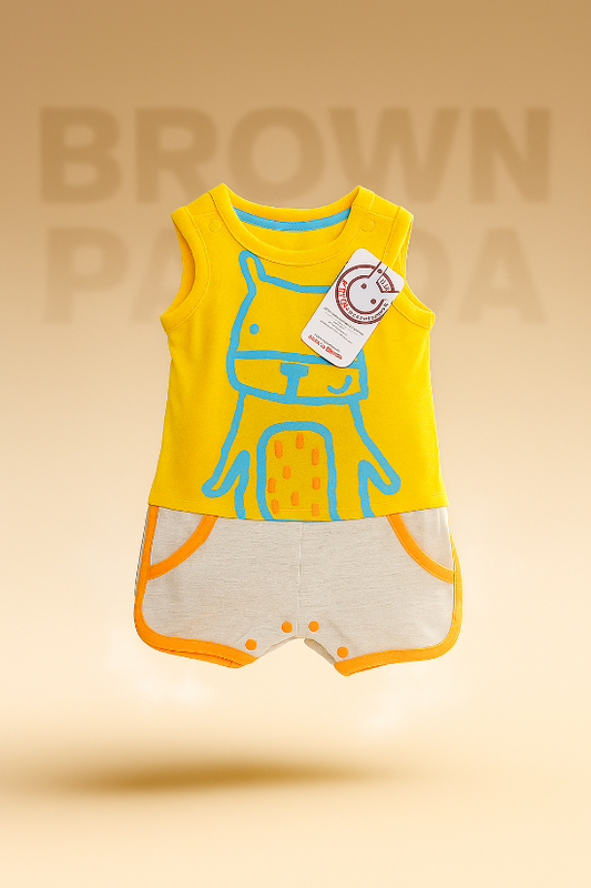 Yellow & Grey Sleeveless Baby Romper Soft Cotton Art No. CM0032