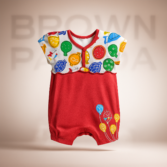 Red Baby Girl Romper Half Sleeves Organic Cotton Art No. CM0046
