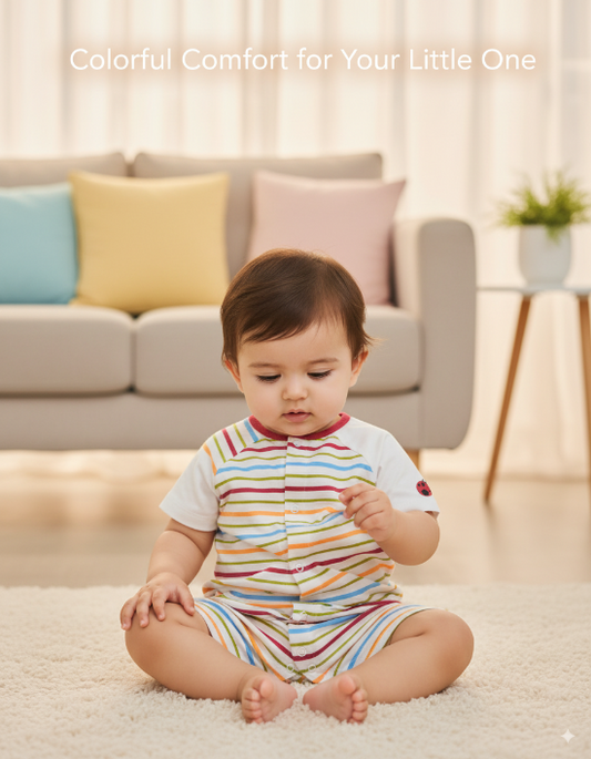 Colorful Striped Baby Romper – Half Sleeves & Legs Organic Cotton Art No. CM0021