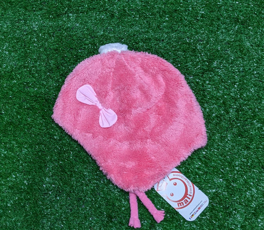 DOUBLE COTTON OUTTER FURR PINK COLOR BABY CAP BOW ON FRONT CM0154