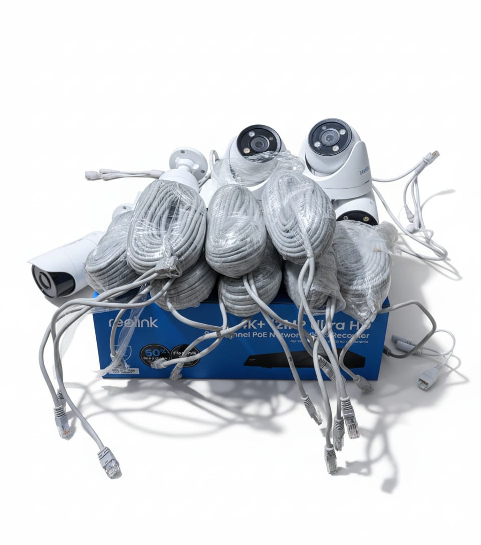 1 REOLINK NVR PIN PACKED BRAND NEW12MP ULTRA HD BUILT IN POE 6 BULLET CAMS (USED) B1200 12MP COLOUR NIGHT VISION 2WAY AUDIO 2 DOME CAMS (USED) 12MP COLOUR NIGHT VISION 2WAY AUDIO 8 EHTERNET WIRE CONNECTOR EACH LENGHT 10M (2TB HDD OPTIONAL )